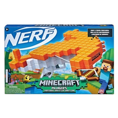 Nerf and Minecraft combine to create distinctive blasters for your Nerf battles! The Nerf Minecraft Pillager's Crossbow takes its inspiration from the popular game, Minecraft. Take on targets with this dart-blasting crossbow and experience real crossbow action. Draw back the cross-bow's string by pulling the priming lever backwards. The crossbow has a 6-dart cylinder, so you can blast 6 darts in a row. The Nerf Minecraft crossbow includes 6 Official Nerf N1 foam darts that deliver extreme accuracy, speed, and distance. The Pillager's Crossbow is a stand-out addition to Minecraft collections and a cool blaster for indoor and outdoor Nerf games.