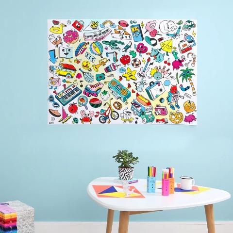 Folded in a beautiful colorful pouch, it's a fun, quirky and graphic poster, to share between all generations! A line full of humor and a multitude of details, a true graphic journey to share between all generations. A limitless artistic space for coloring alone or with others, to unfold on the ground, to hang on the wall or to use as a tablecloth.