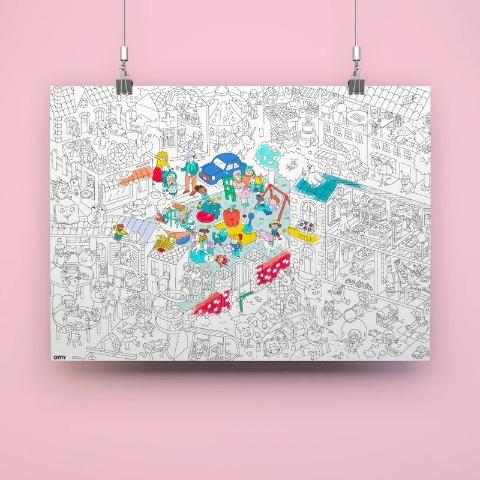 Both educational and fun, this poster retraces the mini-world of the youngest: the park, school and daily activities... A line full of humor and a multitude of details, a real graphic journey to share between all generations.A limitless artistic space for coloring alone or with others, to unfold on the floor, to hang on the wall or to use as a tablecloth.