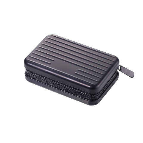 Only 70 x 105 x 30 mm in size, but fully grown in design. And with features that hardly any large hard-shell cases can offer: nine compartments with space for up to 20 cards, change or receipts, readout protection for RFID chips and a wrap-around zipper. Made of aluminium and polyester in matt black, blue and red, as well as titanium colour.