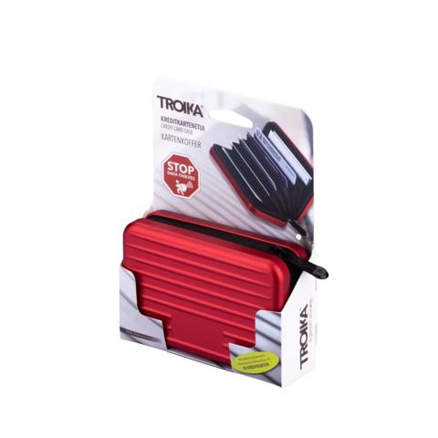 Credit card case in design of a hard shell suitcase, zipper, with fraud prevention (for RFID chips), 9 compartments for approx. 20 cards, money and receipts, aluminium / polyester, matt, Red