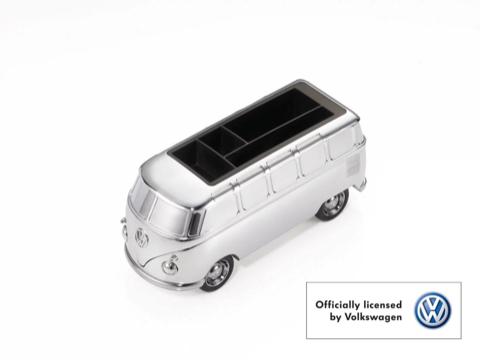 This Volkswagen van model T1 Samba Bus from 1962 enhances any office desk - officially licensed by Volkswagen Pen and paper clip holder with a compartment for smartphones and business cards - designed by studio dreimann - attractive design and high quality Nostalgia for the desk - also usable as a desk car - with friction motor. Provides order for your workplace and it's fun as a men's toy - the Volkswagen Bus for VW enthusiasts.