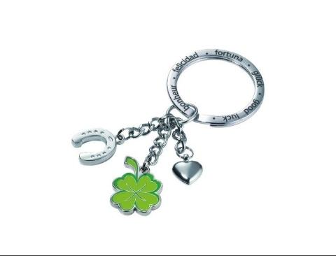 Good luck! You can never have enough luck. A four-leaf clover, a shiny horseshoe and a heart on the GLÜCKSBRINGER XXL keyring are your key to never-ending luck.