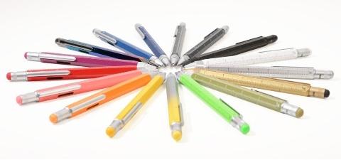A planning aid and a tool box in one! The multitasking CONSTRUCTION pen really has something about it — and in it. Various scales, a centimetre and inch ruler, slotted/Phillips screwdriver, stylus, and spirit level. Nothing can go wrong anymore! In its new design, CONSTRUCION SPECTRUM can confidently show off its colours. Multi-coloured lacquers bleed into one another, with a glossy surface.