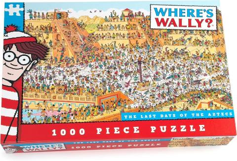 A fantastic 1000 piece Where’s Wally jigsaw puzzle that offers hours of amusing adventures with renowned red and white jumper-wear character! This jigsaw places Wally in the middle of The Last Day of the Aztecs. The puzzle is set in Mexican Valley where the Spanish are battling with the Aztecs, there are plenty of amusing scenes and antics to discover but Where’s Wally? Can you spot him amongst the Aztec chaos? Can you also find his friends Wizard Whitebeard, Wilma, Wenda, Woof, Odlaw and the Wally Watchers? Created by Martin Handford and first published in 1987, Where's Wally is one of the most recognisable characters in the world and a pop-culture icon. Distinctively dressed in his red and white striped sweater, black framed glasses and a bobble hat, Wally is a word traveller, always in search of the next adventure. Where's Wally is one of the most recognisable characters in the world, selling over 55 million books globally. The Where’s Wally Last Days of the Aztecs puzzle is made from high quality card and comes presented in a rectangular box which has been shrink wrapped for further protection. The finished puzzle measures 480mm x 680mm and is suitable for 12 years and over.