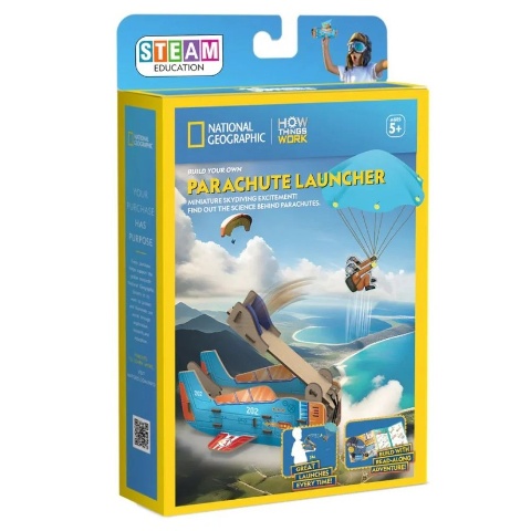 Discover the fascinating world of aerodynamics with this National Geographic Parachute Launcher construction set. Part of the innovative How Things Work range, this STEAM education toy combines learning with hands-on fun for children aged 5 and above.