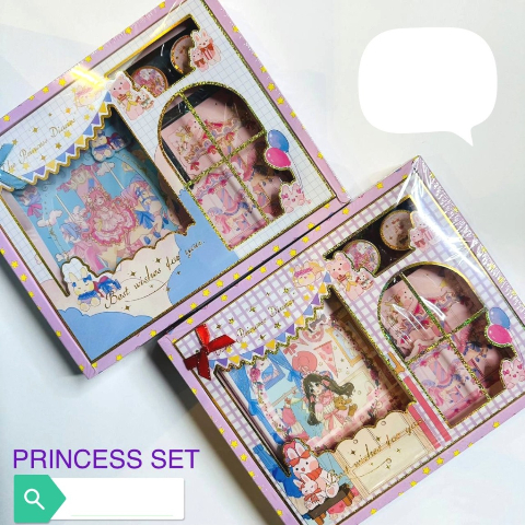 Princess set нь 2022 оны Шинэ загвар юм. Бужо хөтлөх Аниме зурагтай гоёмсог тэмдэглэлийн дэвтэртэй, мемо цаас, мэндчилгээний цаас болон дугтуйтай, 2 төрлийн зурагтай скочтой, мөрөөдлөө бичих, тэмдэглэл хөтлөж сурах зориулалттай сет юм. Өөрийн гэсэн гоёмсог тортой тул бэлгэнд өгөхөд ч чамин сeт.