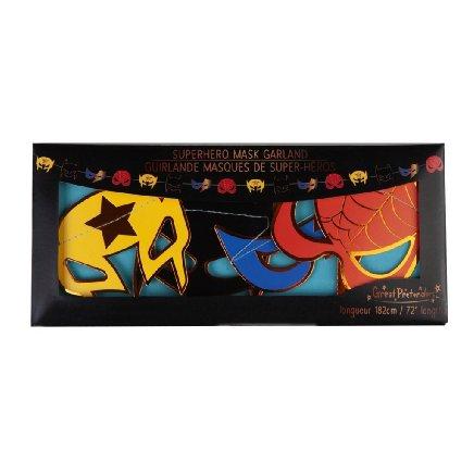 Decorate like a hero with this colourful mask garland. Sewn with gold thread and spanning 6ft in length this garland will be sure to add charm to your superhero party.