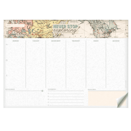 Organise your time and plan your way around the globe with the Legami travel-themed Smart Week Desk Planner. Consisting of 55 detachable sheets with a column for every day of the week plus one for the weekend, there's plenty of space to jot down to-dos, activities and reminders from dawn to dusk. Down the bottom there's plenty of room for your notes and doodles, top priorities and calls & emails, so you never stop exploring. The paper is FSC® certified (FSC-C154586), coming from well-managed forests, FSC® certified forests and other controlled sources.