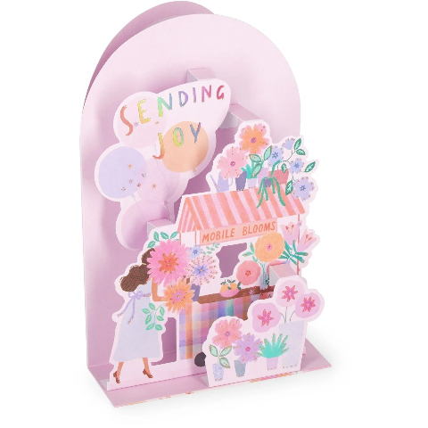 Legami's Pop Up Flower Cart Card is a three-dimensional greeting card that opens to reveal a colorful and detailed flower cart. Perfect for special occasions, it combines creativity and sophisticated design, offering a unique way to express your feelings.