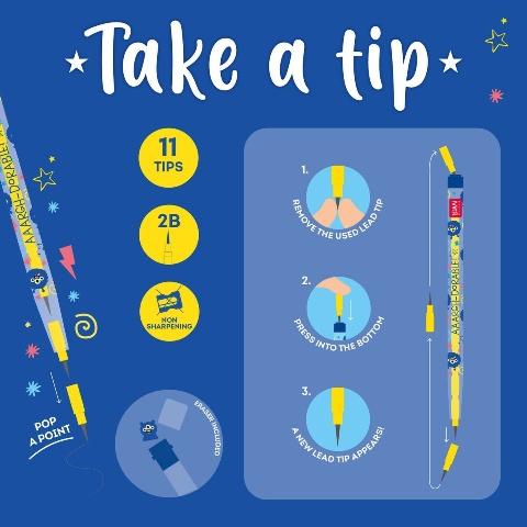 Do you agree that two pencils are better than one? Well, the Stackable Pencil with Eraser - Take a Tip - Monster from Legami goes even further than that: it has a whole 11 tips, so that it's always ready to write with no pencil sharpener needed. Colourful, fun, and super-practical: it's perfect for children and for school.