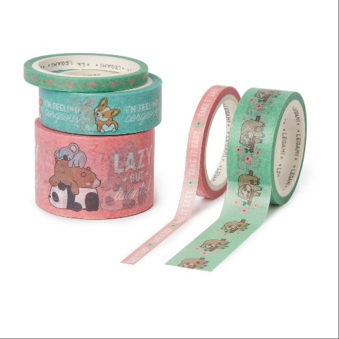 Bring tropical vibes to your arts & crafts projects with the Legami Tape by Tape Cute Animals Set of 5 Colourful Paper Sticky Tapes. With a length of 5 metres and a vibrant palette, these sticky tapes will brighten up your packages, papers and collages instantly.