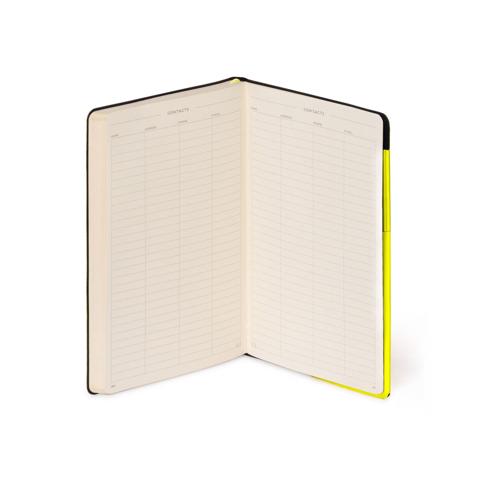 Get organised and get creative with the Legami My Notebook - Lined - Neon Yellow Cover - Medium. With numbered pages, an index, world map and lots of helpful layouts, this notebook has everything you need to start new projects and plan your days. The paper is FSC® certified (FSC-C154586), coming from well-managed forests, FSC® certified forests and other controlled sources.