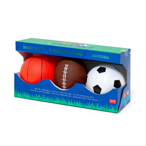 Catch, score and slam dunk with the Legami Mini Ball Set. Consisting of a football, American football and a basketball, this set of 3 will keep the whole family entertained.