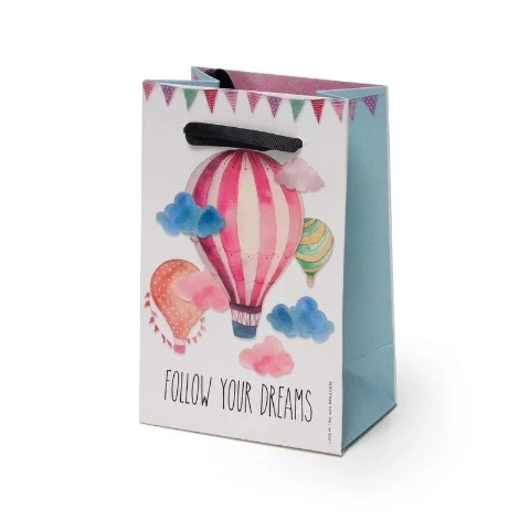 Make someone's day with the Legami Small Gift Bag - Air Balloon. Made of matte laminated 210 g/m² paper and ribbon handles, this beautiful gift bag is the perfect finishing touch for any special occasion.