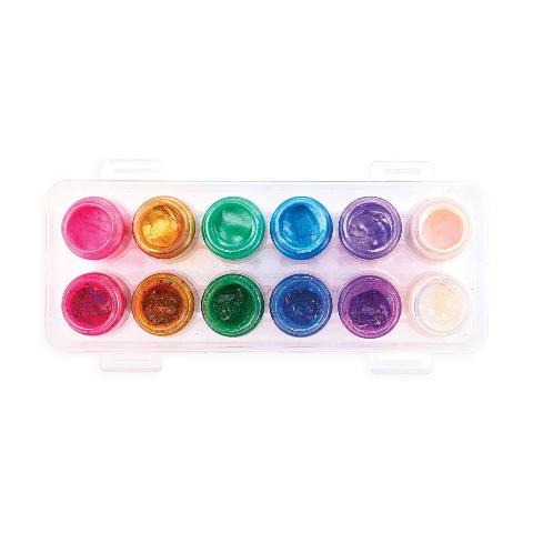 Each style has similar color choices including pinks, purple, yellow, blue, green and white for all your ideas. The 12 paint colors are encased in a handy reusable case with paint brush included.