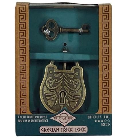 GRECIAN TRICK LOCK - For over 6000 years, humans have used some form of lock to secure their goods from would-be thieves and malcontents. The most common lock is the padlock or ‘Warded Lock’ and is credited to famed Greek Inventor and sculptor Theodorus of Samos who is known for his work in bronze casting and development of tools such as the lathe, the key, the level and more. It is said that Theodorus invented a lock so challenging, not even the most skilled thieves of the time could crack it. Unfortunately, the designs for that lock have been lost to antiquity, until now. THE GOAL of the Grecian Trick Lock is to open the lock using the tools provided. It looks simple, but it is not as simple as it may seem. Difficulty level is 3 stars.