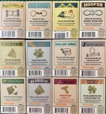 Hook Line and Sinker, Bees Knees, Tangram, T is for Tricky, Hoofer, King Tut’s Tomb, Ring a Ding, All Balled Up, Tri Me, Knotty, Double Cross, and Cat’s Meow.