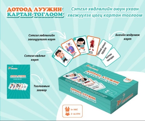 ДОТООД ЛУУЖИН картан тоглоом нь хүүхдийн сэтгэл хөдлөлийн оюун ухаан буюу EQ-ийн дэд чадваруудыг хөгжүүлэхэд зориулагдсан цогц картан тоглоом юм.