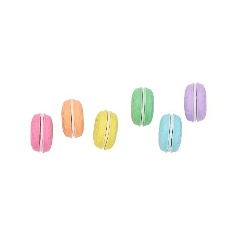 Modeled after delicious pastries from Europe, these Macarons Vanilla Scented Erasers are the perfect writing companion. Curl up with a cup of tea and a scone (or should we say, a “real macaron”), and then get to work! Send your child off to school with these one-inch treats that fit perfectly in their hand. Mix and match the colors for fun color combinations or stick to your favorite color. This set of six comes with pink, orange, yellow, green, blue, and purple.