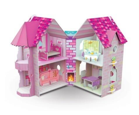 Welcome! Discover what the pretty doll is doing in her little house. What a mess! What could she be preparing in the kitchen? Look at all the beautiful clothes in the bedroom closet! And so many toys in the living room! Flip through the book, read the fun story, and enjoy building a real two-story dollhouse! You can customize it using many elements at your disposal, to arrange wherever you like!