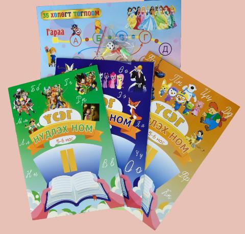 Таваас зургаан настай хүүхдийн сэтгэхүйн онцлогт тохирсон “Үсэг нүдлэх ном 1” ,“Үсэг нүдлэх ном 2”, “Үсэг нүдлэх ном 3”, “35 хөлөгт тоглоом” багцаас бүрдэнэ. Уг ном нь бага насны хүүхэд үсэг бүтээж, өөрийн үздэг хүүхэлдэйн баатруудаа будаж. Шүлгээ цээжлэж, зургаа будаж, үсгээ бичиж, дөрвөн төрлийн хөлөгт тоглоомоор наадаж тоглоомын аргаар үсгээ нүдлэнэ. Уг ном нь хүүхдийн сонирхолын дагуу тоглонгоо үсгээ нүдлэх сургалтын шинэ аргыг нэвтрүүлж байгаагаараа давуу талтай юм. Энгийнээр хэлбэл гэрийн багш гэж болно. Гэр бүлийнхэн болон найз нөхөдтэйгээ тоглон үсгээ хамгийн хурдан нүдлэж, тогтоох чадварыг эзэмшүүлнэ.Хүүхэд тоглонгоо өөрийнхөө баруун зүүн тархийг зэрэг хөгжүүлэх суралцахуйн шинэ арга, хүүхэд хөгжлийн шинэлэг ном юм.