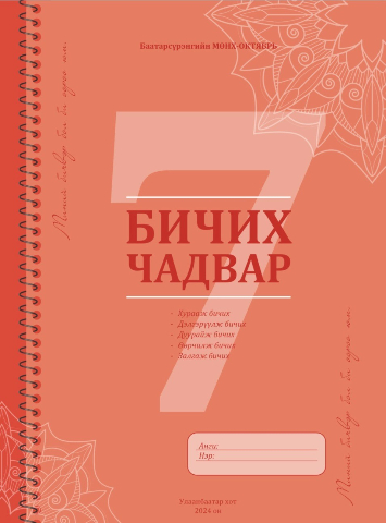БҮХ ДААЛГАВРУУД ДЭЭР СУРАГЧИЙН БИЧСЭН ЖИШИГ ЭХТЭЙ. АЖЛЫН ХУУДАС БҮР ӨӨРИЙН БОЛОН БАГШИЙН ҮНЭЛГЭЭТЭЙ.
