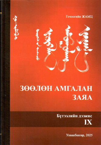 Энэ ном бол Соёлын Гавьяат Зүтгэлтэн Г. Жамцын Бүтээлийн дээжисийн 9 дэх боть ном, Зөөлөн амгалан заяа нь 44-н шүлэг болон дууны цомирлогоос бүтсэн, мөн монгол бичиг дээр сийрүүлсэн бичсэн нь өмнөх хэвлэлээс давуу талтай.