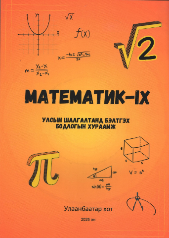 Энэхүү ном нь 9-р ангийн сурагчдад Математикийн Үндэсний ЭЕШ-ын шалгалтад өндөр оноо авахад зориулсан хамгийн иж бүрэн, найдвартай бэлтгэлийн хөтөч юм.
