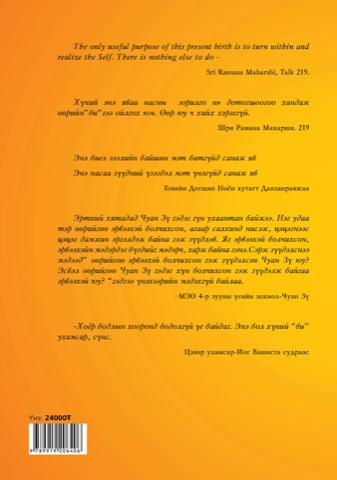 Хүний өөрийн мөн чанар юу вэ? Хорвоо өөрийн мөн чанараар мөнх оршиж байна уу? Эсвэл хий үзэгдэл мэт үзэгдэж харагдаж оршиж байна уу? Таван махбоди өөрөө хуран цугларч ухамсар-сүнс үүссэн юм уу г.м хүн төрөлхтөний асуудаг олон асуултанд эртний Энэтхэгийн Арши мэргэд яаж хариулж, хоорондоо хэрхэн мэтгэлцэж байсныг энэ номноос уншина.