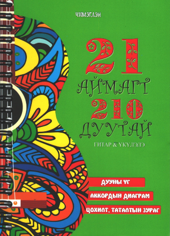 Гитар болон үкүлэлэ хөгжмөөр тоглож болох эх орон, нутаг усны сэдэвтэй 210 дууны аккордтой ном юм. Жавхлан, Батсүх, Эрдэнэбат гэх мэт олон уран бүтээлчдийн шилдэг дууг гитар, үкүлэлэ хөгжмөөр хөгжимдөнгөө дуулаарай.