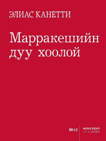 Анх харахад, Канеттигийн Марракешийн дуу хоолой бүтээл нэгэн аялагчийн 1960-аад онд Марракеш хотоор хэрхэн аялснаа тэмдэглэн бичсэн жирийн нэг аян замын тэмдэглэл мэт сэтгэгдэл төрүүлнэ. Зохиолч энэ хотын хөл үймээнтэй зах зээл, еврейчүүдийн дүүрэг, барууны хэв маягтай баар ресторан, араб элсэн чихрийн мухлаг зэргийг уншигчдадаа танилцуулан хүүрнэх аж. Бид түүгээр дамжуулан баян, ядуу хүн ард, сохор гуйлгачин, тэмээний наймаачин, мал нядлагч, дайнд оролцогч, биеэ үнэлэгч, ажилгүйчүүдтэй уулзаж, Канетти ч ер бусын ажиглалтаараа уншигчдадаа ар араас нь гэнэтийн бэлгүүдээ барина.