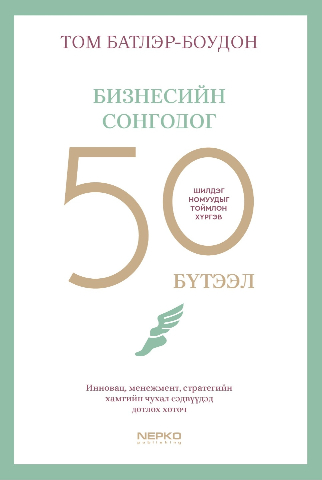 Энэхүү Бизнесийн сонгодог 50 бүтээл нь сонирхолтой онолууд, сургамжит түүхүүд, бодит амьдралын жишээний хольц бөгөөд таныг бизнесийн талаар ул суурьтай бодуулахад зорьсон билээ. Одоо ч мөн чанараа хадгалсаар байгаа жинхэнэ түүхэн сонгодгуудаас эхлээд өнөө цагийн хамгийн сайн бүтээлүүдийг багтааж, тэднийг шүүн тунгааж, амжилтад тань хөтлөх замаа стратегижүүлэх, улмаар бизнестээ ашиглаж болохуйц амьдралд ойрхон санаануудыг олж авахад тань тус болох чухал сэтгэлгээг сорчлон цуглуулах зорилго тавьсан юм.