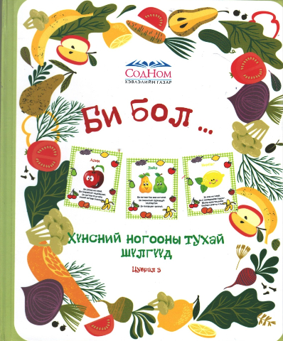 Энэ хүү ном нь хүнс ногооны талаар шүлэглэн бичсэн бөгөөд өнгө үзэмж, ач тус , хэлбэр хэмжээ юунд зориулж ашиглах гэх мэт олон төрлөөр ангилан бичсэн ба хатуу хавтасаар хийгдсэн хүүхэд багчууд уншихад сонирхол татам ном юм.