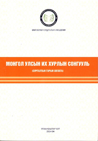 Монгол улсын Их Хурлын Сонгуулийн тухай хуулийг хэрэглээнд оруулсан, сургалтын зорилгоор ашиглах үүднээс гаргасан гарын авлага болно. Сонгуулийн тухай хуулийн 2020-05-07, 2020-12-04, 2021-12-17, 2022-04-22, 2022-06-03, 2023-06-16, 2023-07-07-ны өдрийн тус тус нэмэлт өөрчлөлтүүдийг тусгасан болно.