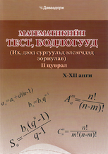 Ном›Хүүхдийн ном›Боловсрол, сурах бичиг›Ахлах ангиБаярцэцэг Д.Математикийн тест бодлогууд IIМатематикийн тест бодлогууд IIИх дээд сургуульд элсэгчдэд зориулагдсан тест ба бодлогууд оруулсан номуудын 2-р цуврал ном бөгөөд өөрсдөө бие дааж бодох, өөрийгөө шалгах хэрэв чадахгүй бол жишээ бодолтууд агуулагдсан болно. Нийт 4 бүлэгтэй. Цааш уншихТанилцуулга