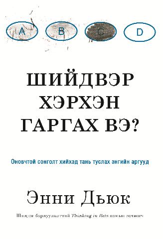Мэргэжлийн покерчин, шийдвэр гаргах стратегийн мэргэжилтэн Энни Дьюк энэ номыг бичсэн. Иймдээ ч текстээр дүүрэн энгийн ном бус дасгал ажил бүхий интерактив бүтээл болжээ. Танд ямар үед хурдан шийдэж цагаа хэмнэх, ямар үед тунгаан бодож цаг зориулах шаардлагатайг ч хэлж өгнө.