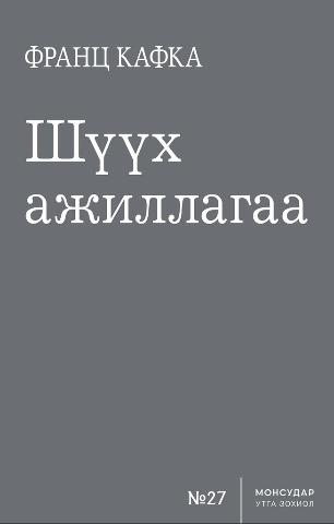 Франц Кафка бол орчин үеийн герман хэлт зохиолчдын хамгийн том төлөөлөгч билээ. Владимир Набоков нэгэн лекцдээ: “Кафкатай харьцуулахад Нобелийн шагналт зохиолч Томас Манн бол өчүүхэн одой хүн л гэсэн үг” хэмээсэн удаатай. Монсудар утга зохиол цувралын 27 дахь дэвтэр Шүүх ажиллагаа романыг бид анх удаа эх хэлнээс нь тодруулбал зохиолчийн гар бичмэлийг баримтлан гаргасан хувилбараас нь орчуулан уншигчдадаа өргөн барьж байна.