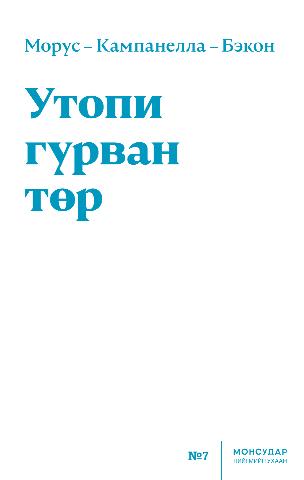Английн философич, зохиолч, теологич Томас Морусын Утопи хэмээх улс төрийн шог зохиол нь тэртээ 1516 онд Латин хэлнээ хэвлэгджээ. Сэргэн мандалтын үеийн хуманизмын хамгийн чухал бүтээлд тооцогддог уг ном төгс төгөлдөр нийгэмтэй төсөөллийн арлын тухай хүүрнэл юм. Утопи арал дээр хамгийн сайн засаг байх бөгөөд ард иргэд нь туйлын аз жаргалтай амьдрах аж. Томас Морус уг суут бүтээлээрээ тухайн үеийн шашны дайн, ядууралд ялзарсан нийгмийг тэр чигээр нь дүрслэн харуулжээ.