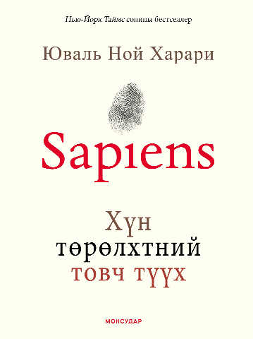Иерусалемын Хебрю их сургуулийн профессор Юваль Ной Харарийн хүн төрөлхтний үүслээс эхлээд түүний хувьслыг өгүүлсэн энэхүү ном нь олон улсад бестселлэр болсон юм. Тэрээр номдоо биднийг тодорхойлох биологи болон түүхийн арга замуудыг судалж, “хүн” гэж юу болох тухай ойлголтыг сайжруулсан.