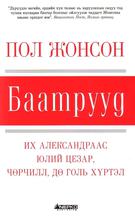 _Сэхээтнүүд_ , _Бүтээгчид_ зэрэг бестселлер номуудын зохиолч Пол Жонсон эл мэдлэг олгосон зугаатай бүтээлдээ дан ганц өөрсдийн нийгэм, соёлоо биш бүр дэлхий дахиныг өөрчилсөн дэлхийн өнцөг булан бүрийн, янз бүрийн цаг үе эриний баатарлаг хүмүүсийн тухай өгүүлжээ. 'Баатрууд' зохиолд Самсон, Жудит, Дэбора, V Хэнри, Жанна д'Арк, I Элизабет, Волтер Рали, Жорж Вашингтон, Вэллингтоны хэрцог, лорд Нэлсон, Эмили Дикинсон, Абрахам Линколн, Робэрт И.Лий, Май Вэст, Мэрилин Монро, Роналд Рэйган, Маргарет Тэтчэр, II Жон Пол пап зэрэг баатрууд багтжээ.