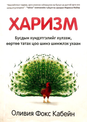 Харизм-Бусдын хүндэтгэлийг хүлээж өөртөө татах цоо шинэ шинжлэх ухаан. Бизнес, улс төр, олон нийтийн тавцанд өндөр амжилтад хүрэхээр тэмүүлж буй хүмүүс, өсөж дэвжихээр хөдөлмөрлөж буй хэн бүхний хувьд Харизм гэдэг бол тойрч болшгүй чухал ойлголт байдаг билээ. Олон Энтрепренерууд, томоохон пүүс компанийн захирлууд өөрсдийн амжилтын нууцыг Харизмтай холбон тайлбарлаж, түүнийг хүмүүсийн харилцааны хамгийн ноёлонгуй арга хэмээн нэрлэсэн байдаг. Харамсалтай нь хэдэн зууны туршид үлгэр домог, ид шид мэтээр ам дамжигдан яригдаж ирсэн хүмүүсийн харилцааны Харизм хэмээх ойлголтыг нарийвчлан судалж, 21-р зууныхны хэрэгцээ шаардлагад нийцэхүйц сайн ном өнөөг хүртэл бүтээгдээгүй байсан юм. Тэгвэл Харизм хэмээх харилцааны зэвсгийг хэдэн зуун судалгаан дээр үндэслэн шинжлэх ухааны үүднээс тайлбарлан, амьдралд шууд хэрэгжүүлж болохуйц бэлэн жорыг агуулсан гайхамшигт ном уншигч таны гарт яг одоо хүрч байна. Харизм бол хүнд төрөлхөөс заяасан чадвар бус хүссэн хүн бүхэн хичээл зүтгэлийнхээ үр дүнд сурч, үр дүнг нь хүртэж болдог зүйл төдийгүй өөрсдийн хэрэгцээнд тохируулан харилцаж буй хүн, орчин, зорилгодоо тааруулан ашиглаж болдог харилцааны олон талт арга юм. Хувь хүн, найз нөхдөө өөртөө татах, байгууллага, хамт олноо манлайлах, удирдлага, дээд тушаалтандаа танигдах, өөрийгөө зөвөөр ойлгуулах хүсэлтэй хэн бүхэнд Зохиолч Оливия Фокс кабейн нь энэхүү Харизм хэмээх бүтээлээ зориулан бичжээ.