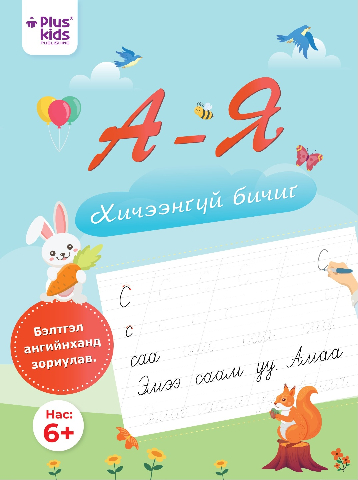 Ном›Хүүхдийн ном›Танин мэдэхүй, нэвтэрхий тольА-Я хичээнгүй бичиг (0)ЭхлэлА-Я хичээнгүй бичиг (0)Эхлэл' **А-Я Хичээнгүй бичиг** ' нь хүүхдэд цагаан толгойн үсгийг зөв хичээнгүй бичиж сурах, гар зүгшрүүлэх, бичгийн хэвийг сайжруулах, зөв цэгцтэй бичиж сурахад тусална. Цааш уншихТанилцуулга